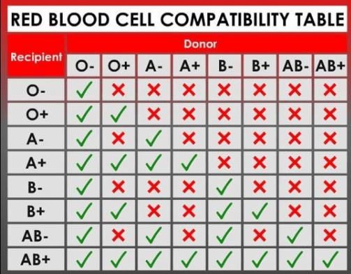 So I have Rh negative blood. Which means more people can use my blood, but I can’t receive any Rh positive blood. In the United States, approximately 85% of people have Rh positive blood, leaving the remaining 15% to have Rh negative. The chart above shows the compatibility of blood types. As you can see, everyone can receive O neg blood, but if you have O neg blood you can only receive O neg. AB+ blood types can take blood from everyone, but no other type can use theirs.